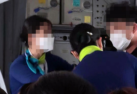 결국 남성 승무원이 기내 난동남을 제압한 뒤 피해 가족을 맨 뒷좌석으로 이동 시켰습니다.