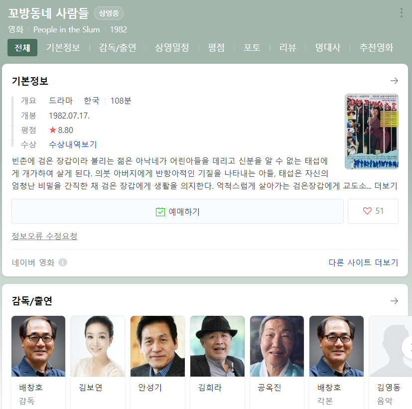 배창호 감독 특별전의 개막작은 1982년 영화 '꼬방동네 사람들'로 안성기가 주연배우였습니다.