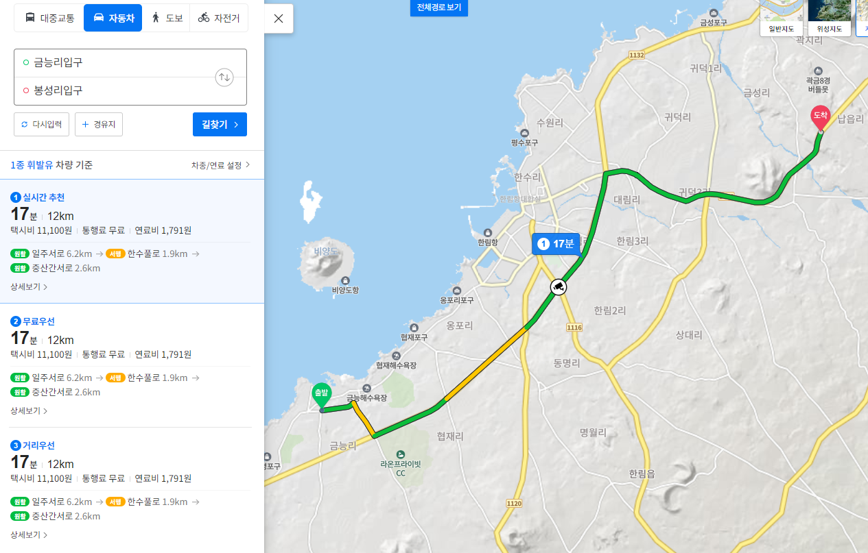 곽도원씨는 제주시 한림읍 금능리에서 애월읍 봉성리까지 약 10km의 거리를 운전했다고 하였습니다.