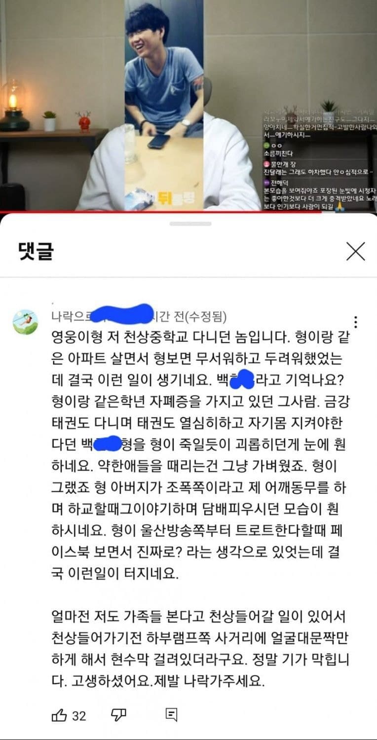 그러나 결승전 진출 직전, 중학교 시절 학교폭력과 군 복무 시절 폭행 등 이전 폭력적인 행동에 대한 폭로가 나와 논란이 일었다. 또한 자폐학생을 괴롭혔다는 제보 또한 이어져 많은 논란이 일고 있다.