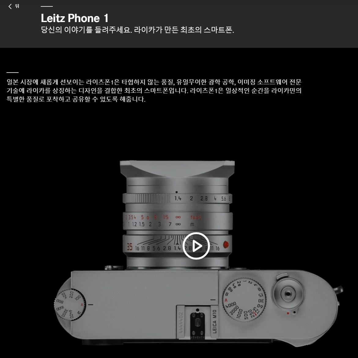 라이카는 독일의 광학기업 라이츠 Leitz가 만든 카메라, Leitz + Camera = Leica 인데 이 라이츠가 만든 최초의 스마트폰 라이츠 폰1입니다.