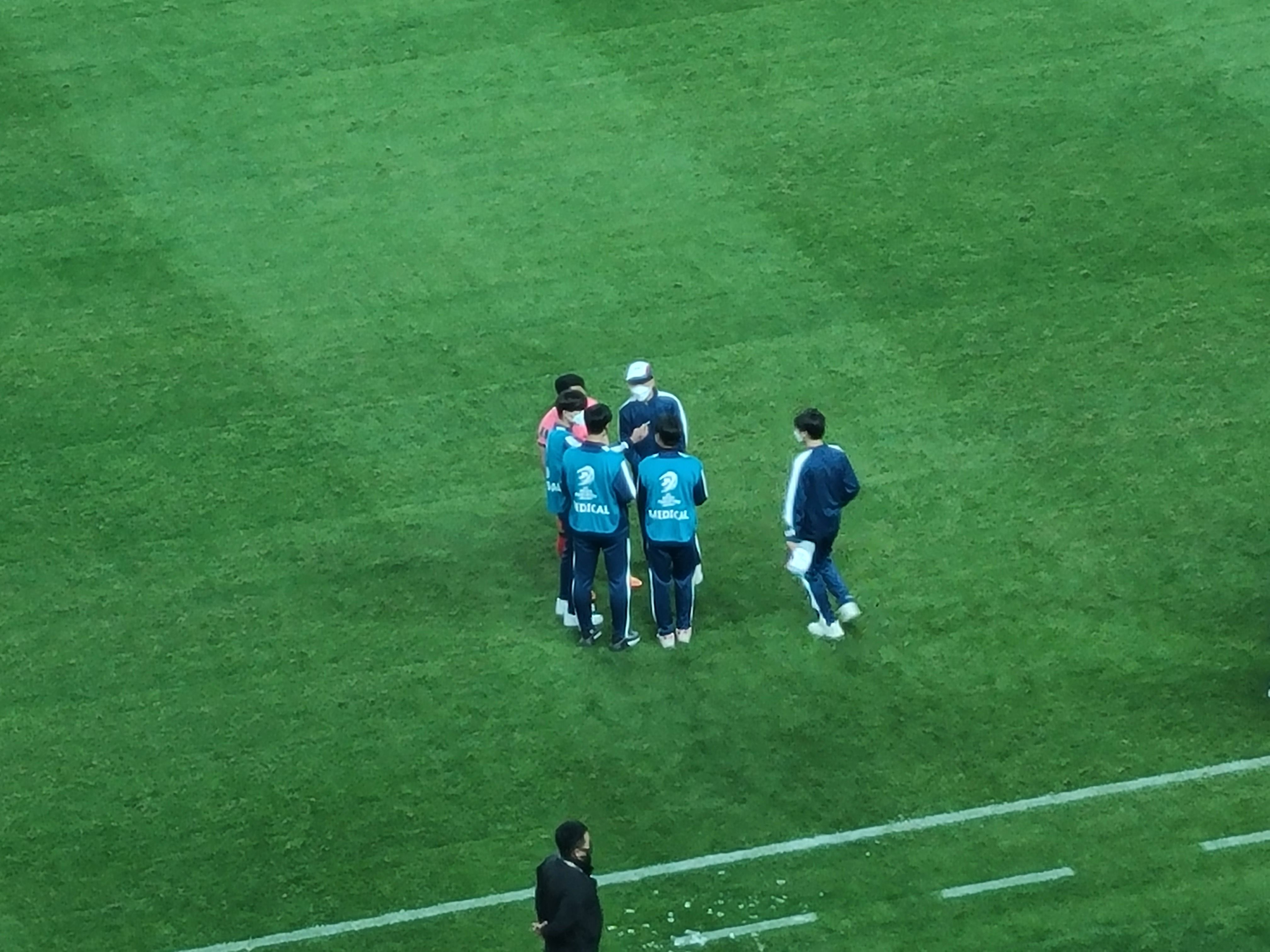 골키퍼가 우선 나와서 몸을 풉니다.