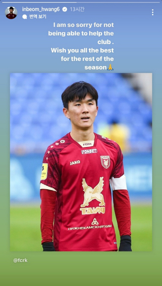 루빈카잔을 잠시 떠나며 팀을 돕지 못해 미안하다 남은 시즌 동안 행운을 빈다고 말하며 루빈카잔까지 신경 쓴 도덕책 황인범.. 그는 대체....