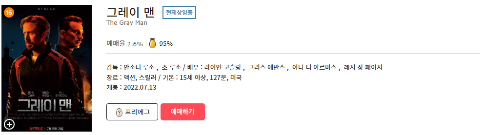 화려한 액션과 라이언 고슬링, 크리스 에반스가 나오는 액션 영화입니다.