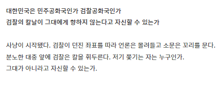 검찰에 관한 얘기가 많이 나올 듯합니다.