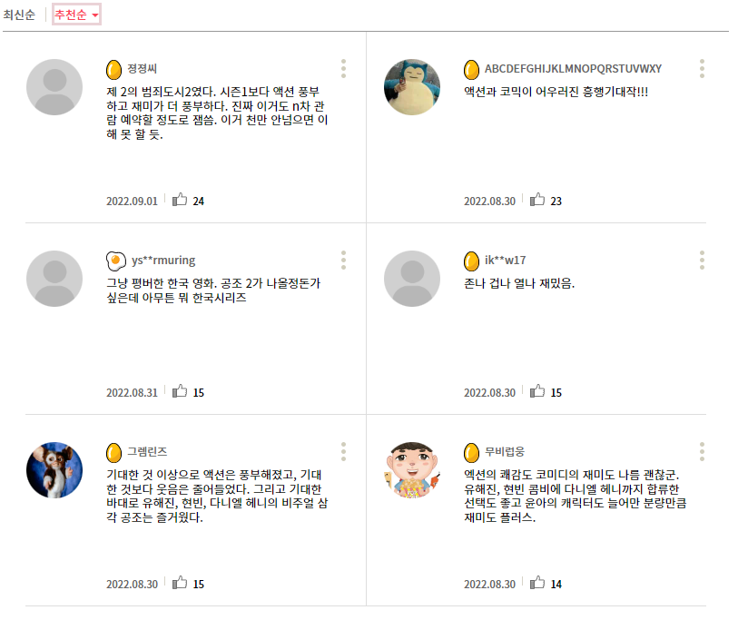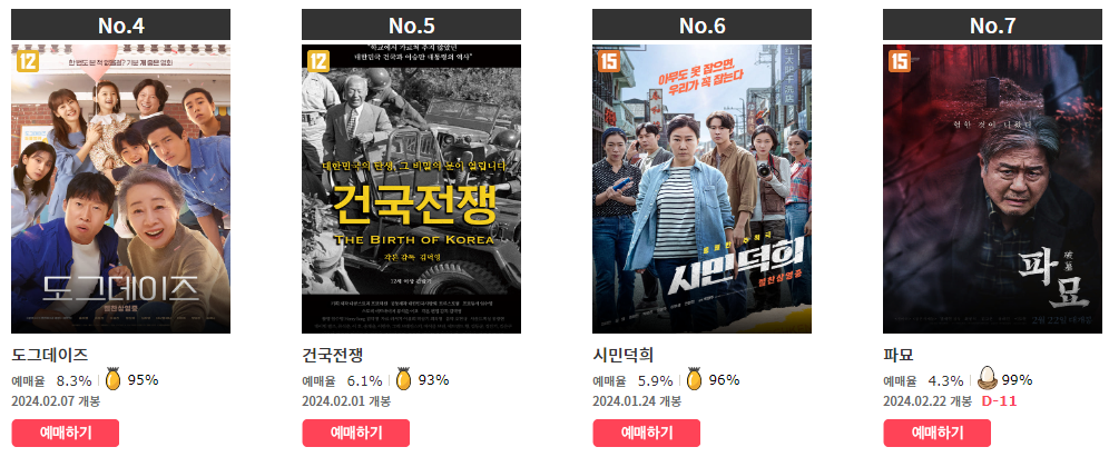 지금까지 CGV영화 예매 순위를 알아봤습니다.^^