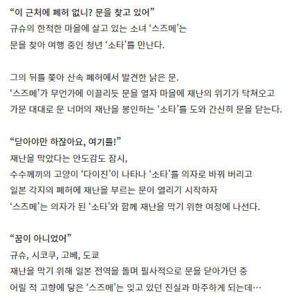 세상의 운명을 건 문단속이 시작된다 '스즈메의 문단속'