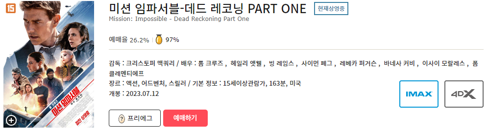 처음에 아이맥스와 4DX로 개봉하다가 시간이 지나 일반관만 상영했는데 이번에 다시 4DX 상영한다고 합니다.
