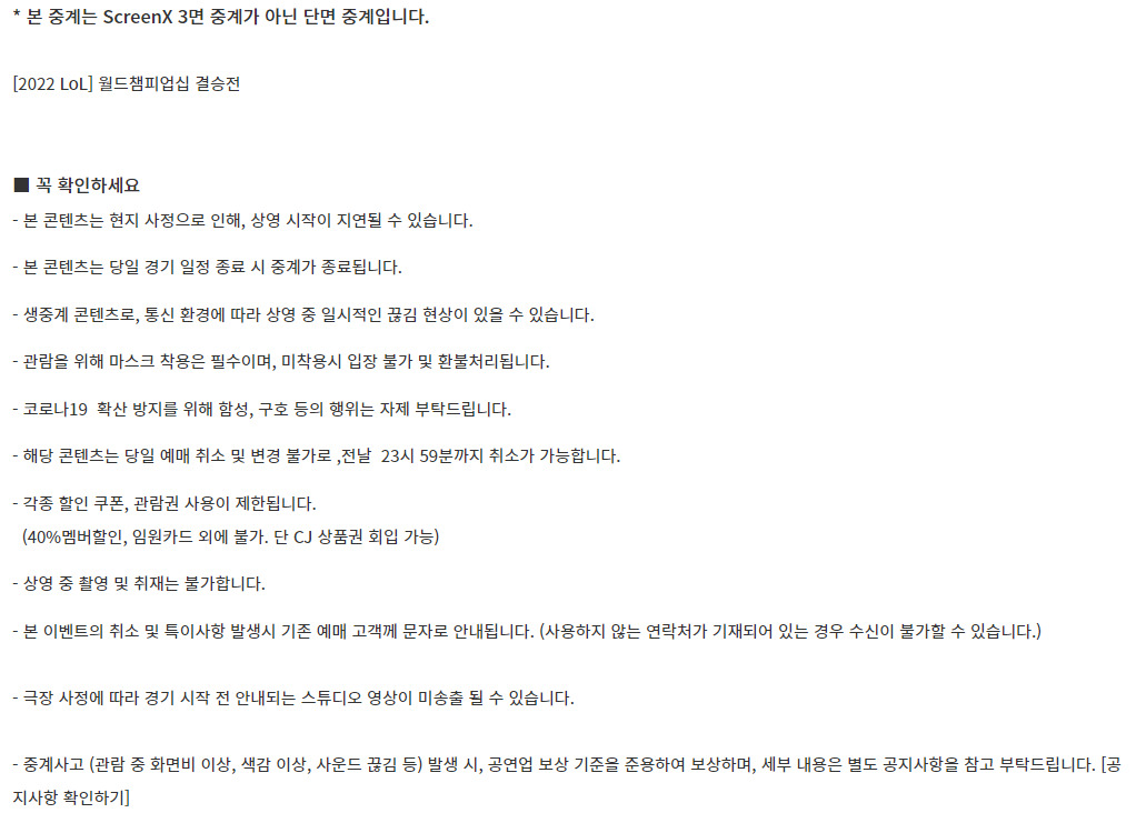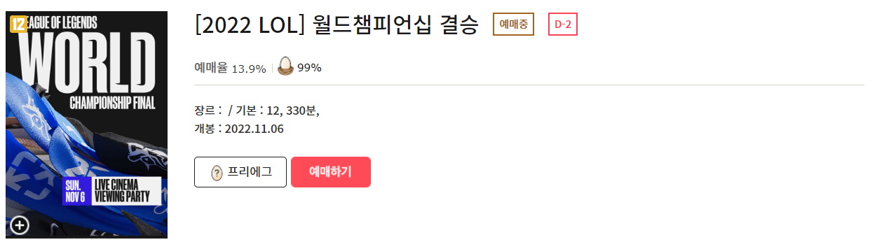 2022 롤 LOL 월드 챔피언십 결승전 극장 예매