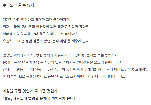 ***쿠키 영상은 2개이며 하나는 금방 나오고 두번째는 엔딩 크레딧 다 끝나고 나옵니다. 두번째 쿠키는 큰 의미가 없으며 급하신 분은 나가셔도 좋습니다. 쿠키의 내용은 글 맨 마지막에 적겠습