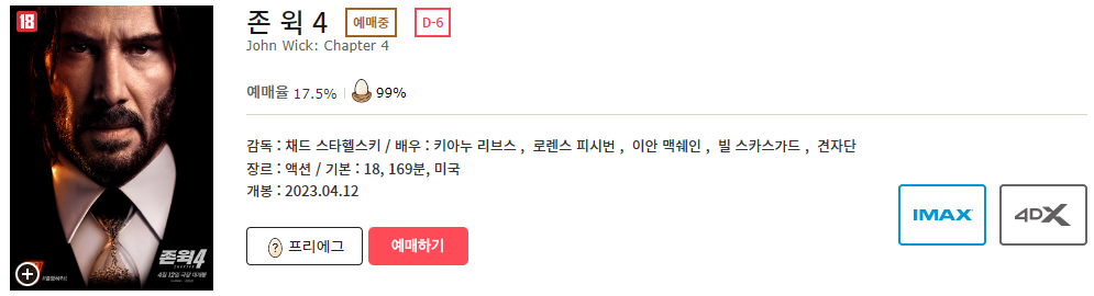 시작과 함께 미국 박스 오피스 1위를 차지한 존 윅 4
