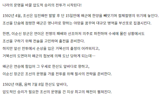 이순신 장군의 한산도대첩을 극장에서 만나봅시다.