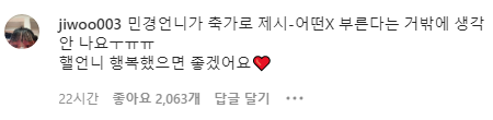 이 결혼 발표에 언제나 항상 함께 했던 영혼의 단짝 강민경은 지나의 노래 제목에서 따온 '꺼져줄게 잘 살아'라는 답글을 달며 웃음을 줬습니다.