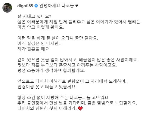 다비치의 이해리는 11일 자신의 인스타그램을 통해 결혼 사실을 발표했습니다.