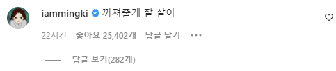 이 결혼 발표에 언제나 항상 함께 했던 영혼의 단짝 강민경은 지나의 노래 제목에서 따온 '꺼져줄게 잘 살아'라는 답글을 달며 웃음을 줬습니다.