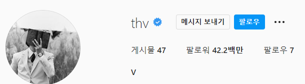 뷔의 팔로우는 기존 BTS 공식 계정과 BTS 각 멤버의 계정이 팔로우 되어 있습니다.