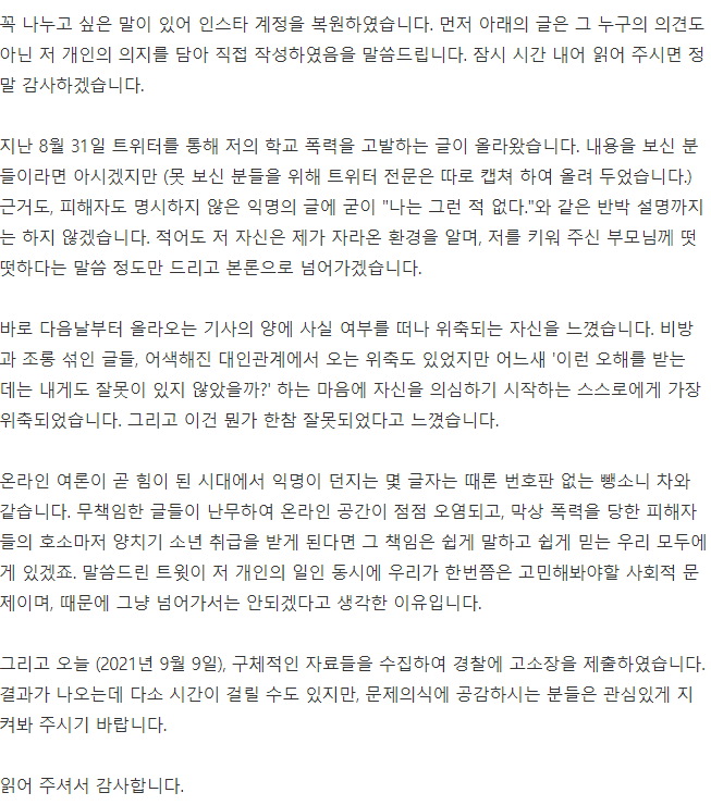 자신은 전혀 그런 적이 없고 부모님께 떳떳하다라고 하였습니다.