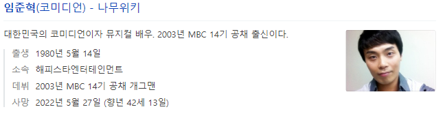 개그맨 임준혁이 갑작스럽게 세상을 떠났습니다.