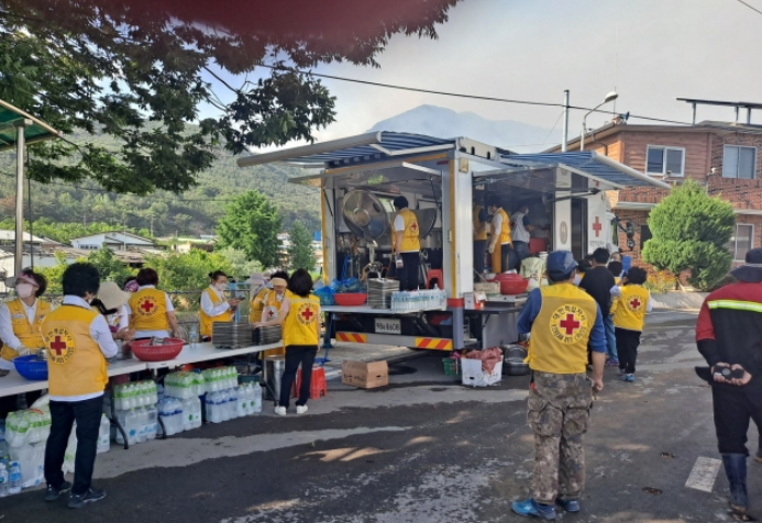 또 대한적십자사, 밀양농협, 밀양시자원봉사단체협의회, 밀양청년회의소, 밀양시보건소 등 많은 단체가 산불 진화요원들과 피해 주민을 위해 음식과 구호물품 등을 지원하고 있습니다.