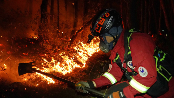 산불 확산속도가 빠르고 풍향 전환이 빨라 진화에 어려움을 겪었고