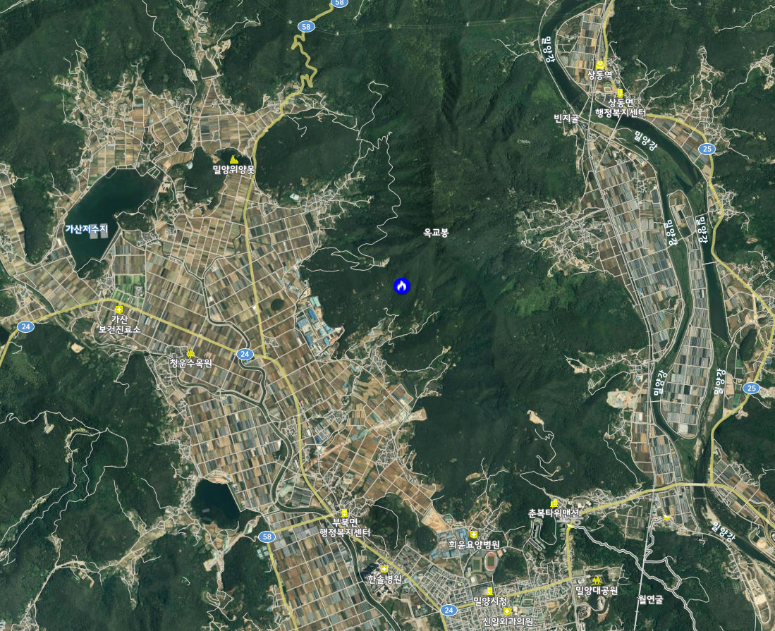 5월 31일 오전 9시 25분 경남 밀양시 부북면 춘화리 산 21 산불 발생