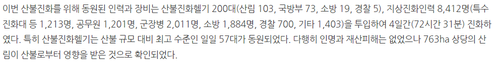 산불 진화 동원 인력