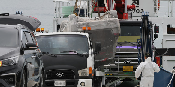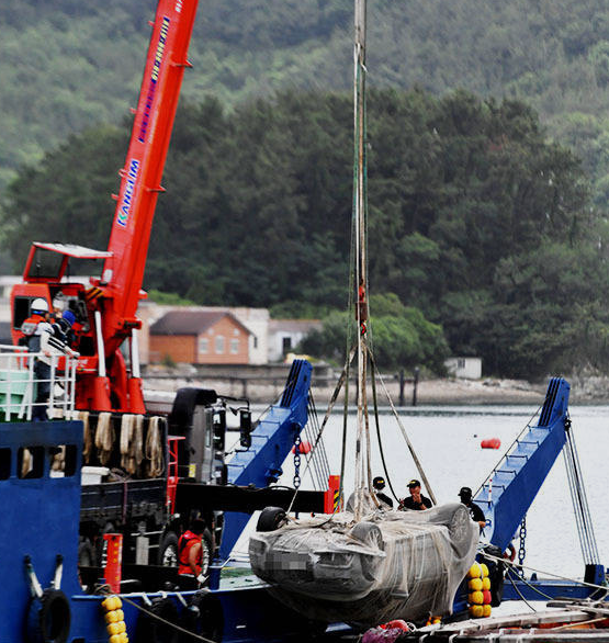 29일 2시간동안 인양 작업을 하여 전남 완도군 신지면 앞바다에서 건져 올렸습니다.