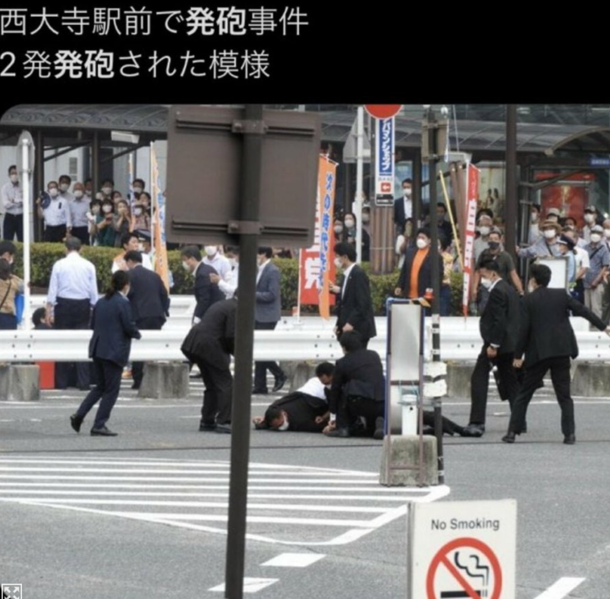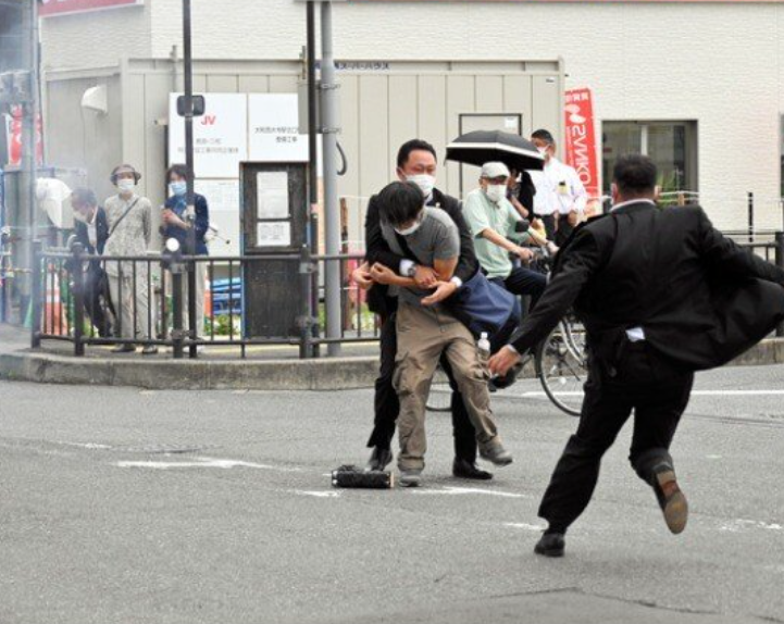 아베는 그 자리에서 쓰러지고 남성은 바로 체포 되었습니다.