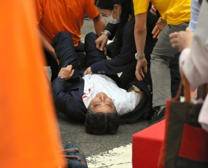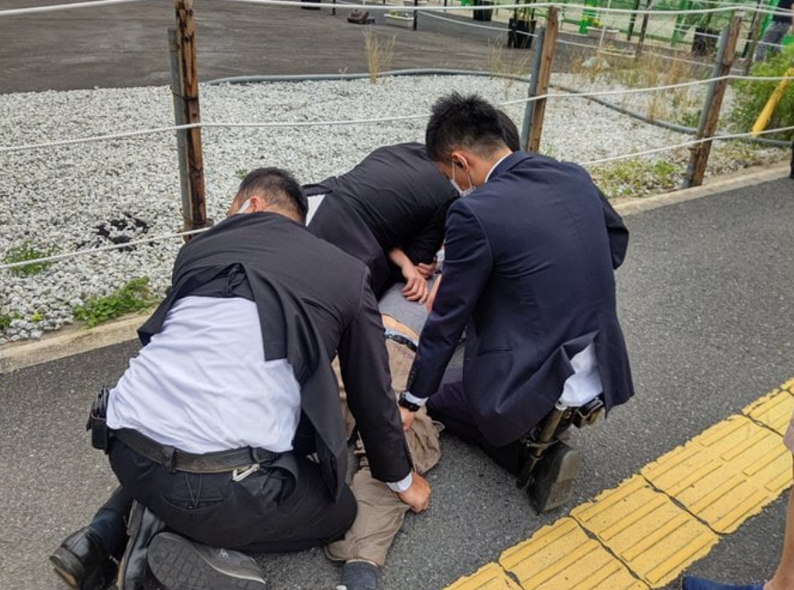 아베는 그 자리에서 쓰러지고 남성은 바로 체포 되었습니다.