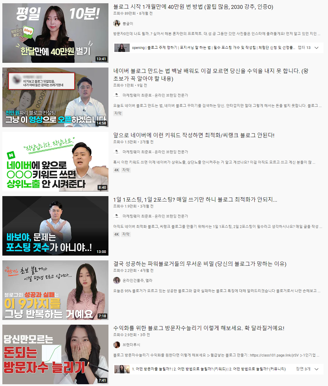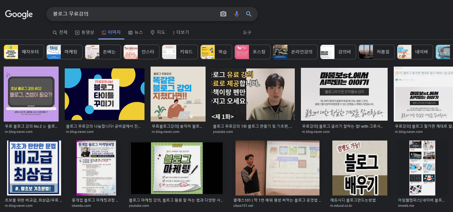 구글에서 '블로그 무료강의'라고만 검색해도 수십 수백개의 글이 검색됩니다.