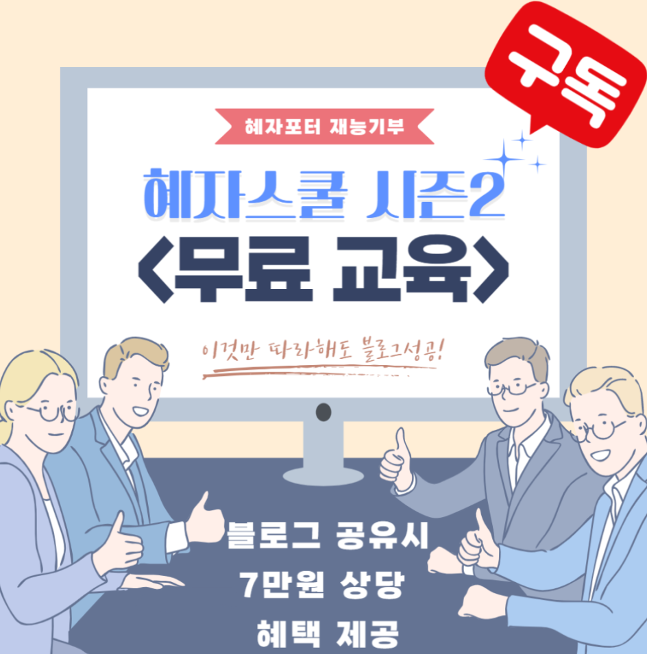 [블로그 무료 교육] 혜자스쿨 시즌 2 오픈 (공유시 7만원 혜택)