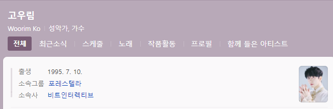그룹 포레스텔라에 소속된 성악가이자 가수입니다.