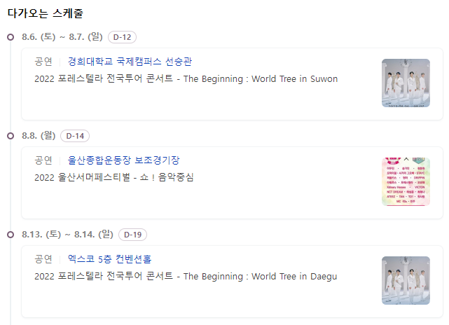 2022 포레스텔라 전국투어 콘서트로 경희대를 방문하고 엑스코에서도 공연을 합니다.