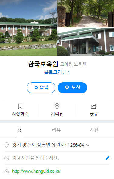 도시 속에 있는 보육원이 아니고 경기 양주시 장흥 유원지쪽에 있어 자연과 어울어진 느낌입니다.