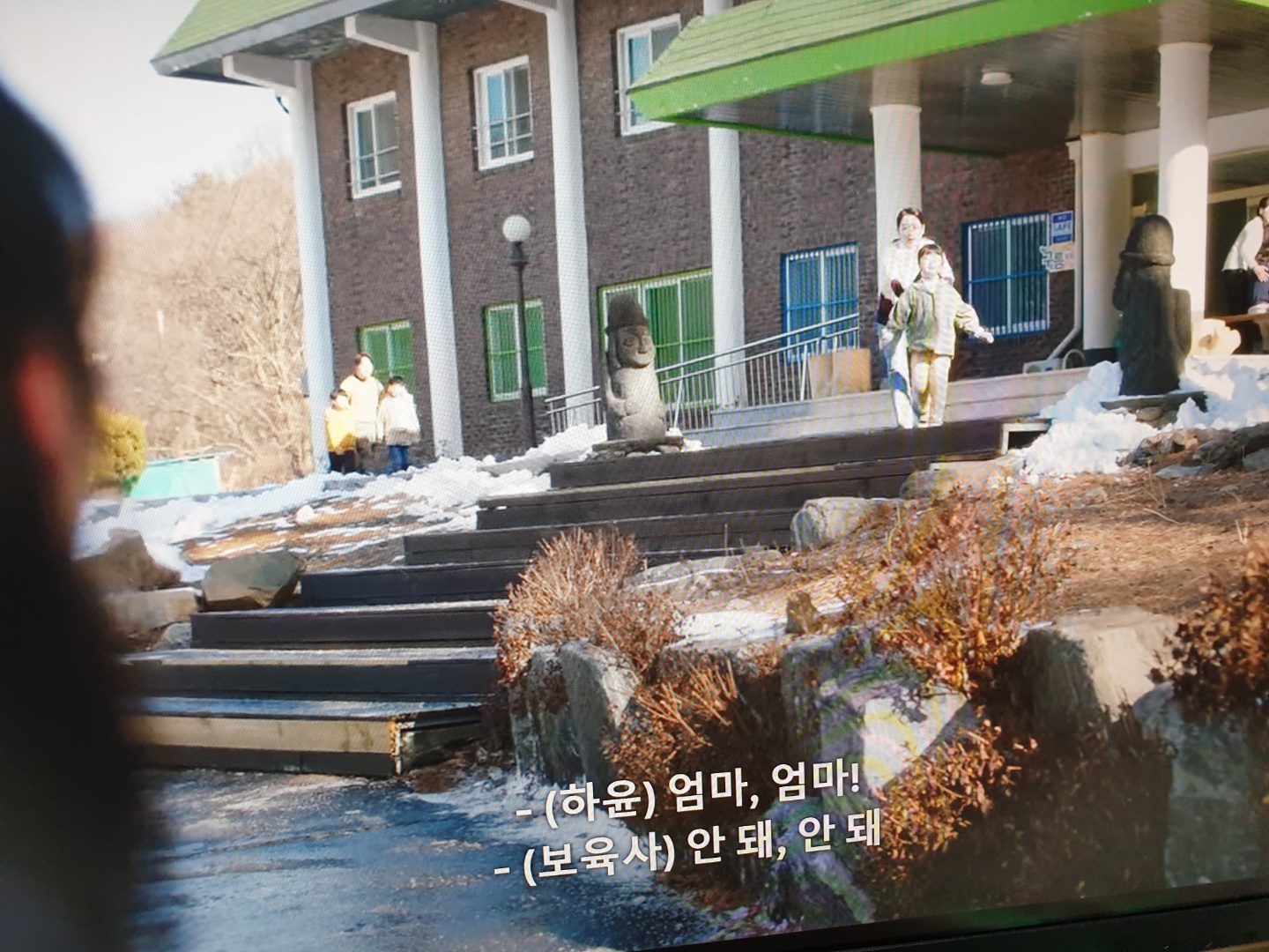 어쩔수 없이 맡기며 엄마와 아이나 나뉘는 장면에서 보육원의 건물이 나옵니다.