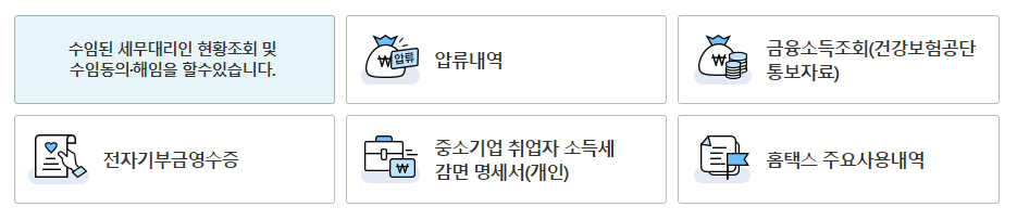 로그인을 하고 나면 오른쪽 메뉴 맨 아래에 '기타 세무정보'가 있습니다.